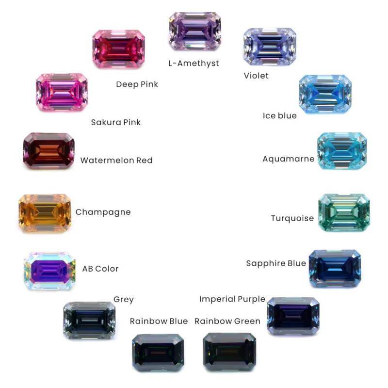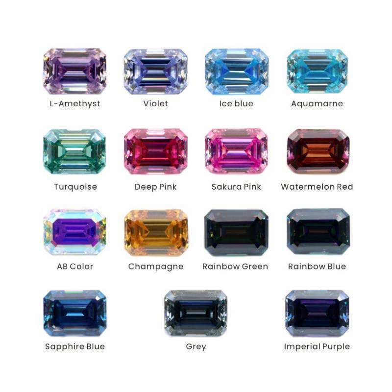 | Moissanite Color | Black, Champagne, Garnet, Gray, Green, Light Purple, Rainbow Blue, Rainbow Green, Royal Blue, Sakura Pink, Sea Blue, Turquoise, Yellow |