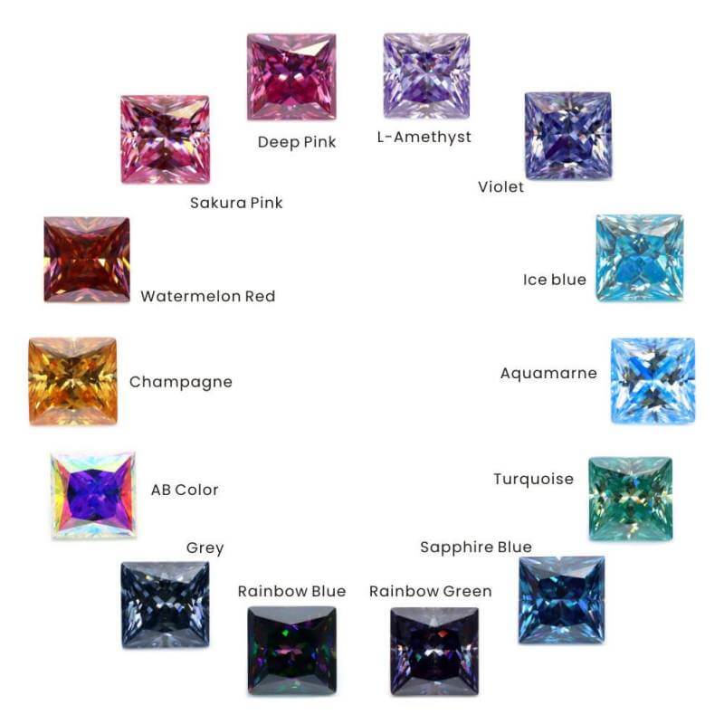 | Moissanite Color | Black, Champagne, Garnet, Gray, Green, Lemon Yellow, Light Purple, Rainbow Blue, Rainbow Green, Royal Blue, Sakura Pink, Sea Blue, Turquoise, Yellow |